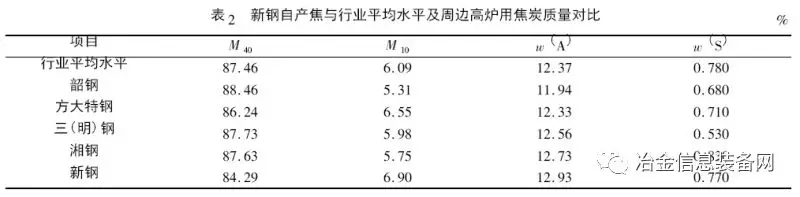 通過選擇合理渣系、加強管理、取消中心加焦冶煉等措施,實現(xiàn)了新鋼2 500 m3 高爐低品位、高比例燒結(jié)礦爐料結(jié)構(gòu)下的爐況長期穩(wěn)定順行。同時,其技術(shù)經(jīng)濟指標(biāo)與行業(yè)同類型高爐指標(biāo)對比,在新鋼2 500 m3 高爐入爐品位低于行業(yè)平均水平0. 81%的情況下,新鋼燃料比較行業(yè)水平低35. 95 kg /t,煤比高12. 57 kg /t,綜合焦比降低38. 06 kg /t。